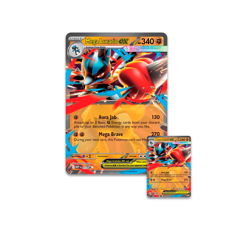1 carta promo holográfica grabada en relieve de Mega-Lucario ex