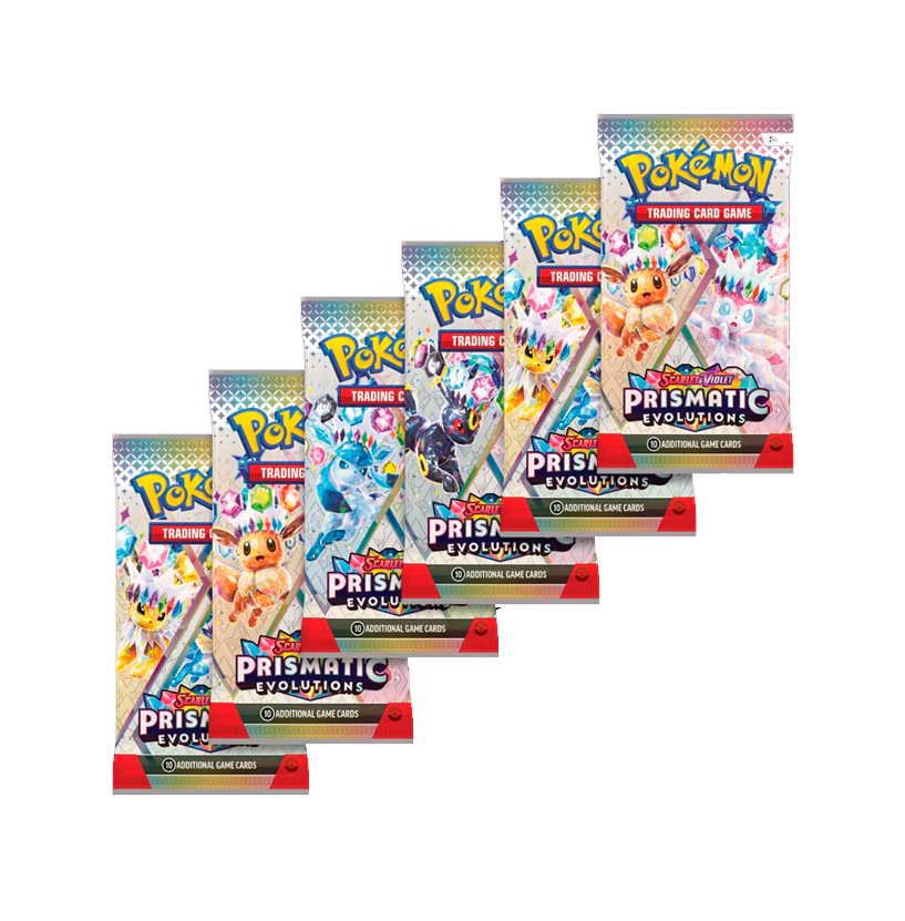 - 6 sobres de la expansión Escarlata y Violeta - Evoluciones Prismáticas, con la posibilidad de encontrar cartas raras, Pokémon ex y cartas de Paldea