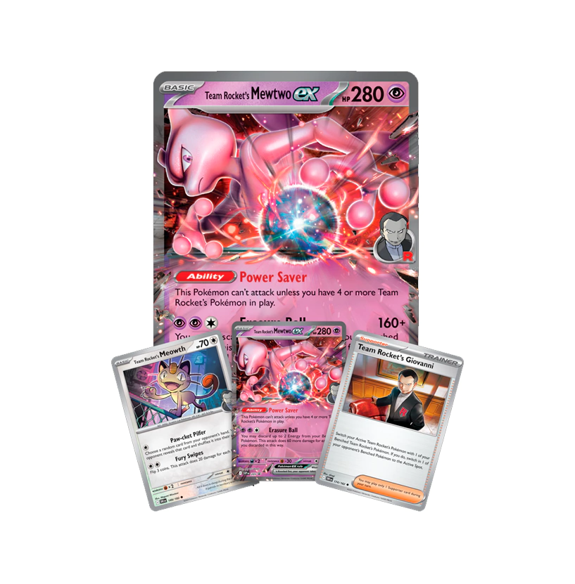 1 carta promocional holográfica de Team Rocket's Mewtwo ex, con arte alternativo exclusivo.